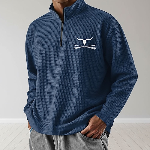 Per uomo Mucca Felpa Quotidiano Classico Casual Cowboy Western Collo alla coreana Zip a un quarto All'aperto Casa Ufficio Lavoro Nero Blu Marrone Verde militare Grigio Con zip Autunno Inverno