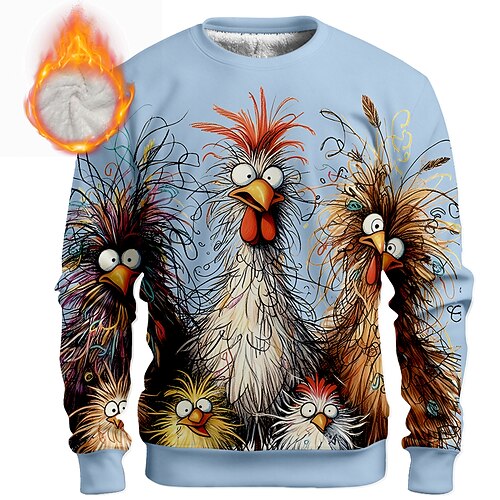 Per uomo Gallo Scontroso Pile Felpa Quotidiano Casual 3D Girocollo Casa Feste Regalo Abbigliamento casual alla moda Blu chiaro azzurro cielo Nero Bianco Rosso Stampa 3D Autunno Inverno progettista S