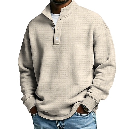 Per uomo Gradiente di Colore Nido d'ape Felpa Moda Quotidiano Casual Collo Alto Casa All'aperto Abbigliamento casual alla moda Ufficio Blu Viola Verde Cachi Blu scuro Bottoni Autunno Inverno