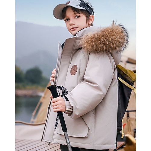 Bambini Unisex Giacca in piuma Giacca da esterno Capispalla Tinta unica Manica Lunga Tasca Tenere al caldo Antivento Cappotto All'aperto Quotidiano Essenziale Nero Bianco Giallo Inverno 5 anni