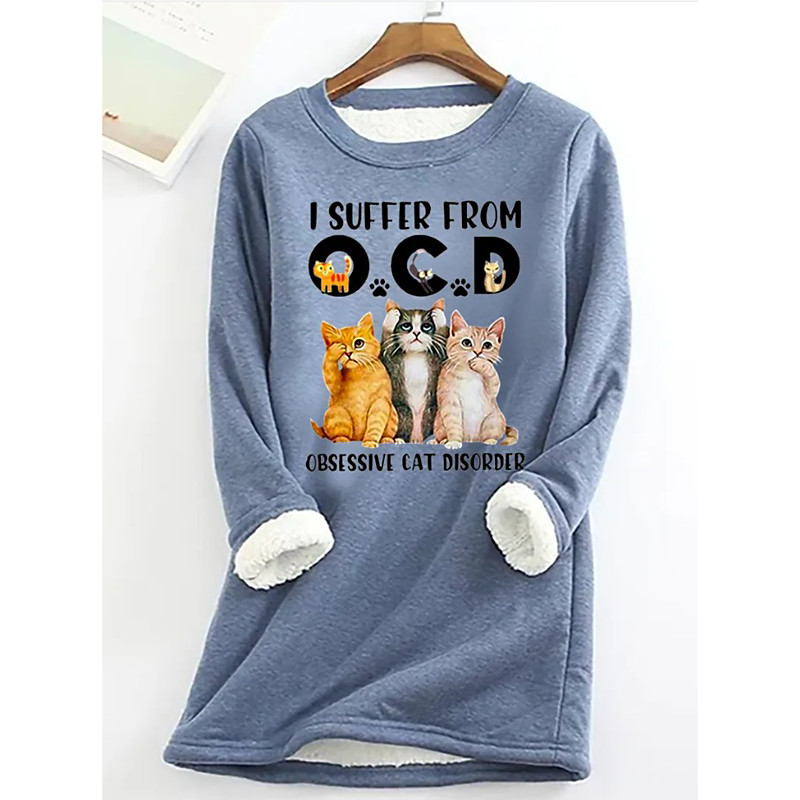 Women's Pullover Graphic Letter Warm Classic Casual Long Sleeve Crew Neck Regular Tops Casual Home Street Print Blue Black Pink Red Spring Fall Winter