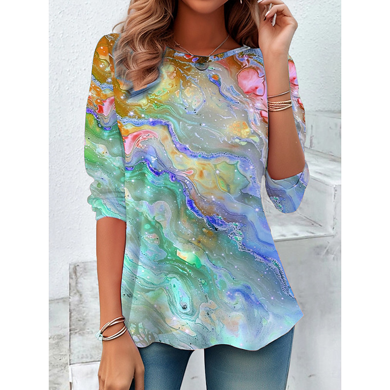 Women's T Shirt Ombre Graphic Vintage Stylish Classic Long Sleeve Crew Neck Round Neck Regular Tops Daily Weekend Print Purple Fuchsia Green Spring Fall Winter