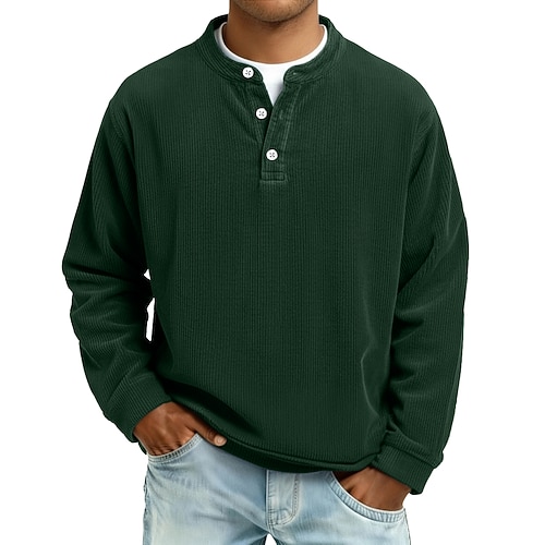 Per uomo Camicia di Velluto a Coste Maglia Henley Maglietta Manica Lunga Tinta unica Semplice Moda Designer Casual Cardigan con Bottoni Caldo Henley Casuale Quotidiano All'aperto Autunno Autunno