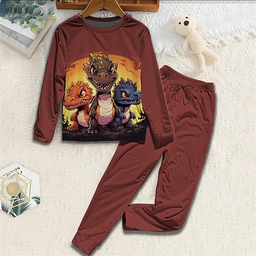 Ragazzi 3D Dinosauro Set Pigiama Set Pigiama Maglietta Pantaloni Manica Lunga Stampa 3D Autunno Inverno Attivo Essenziale Bambini Dai 4 anni in su Girocollo Casa Quotidiano Vestibilità regolare