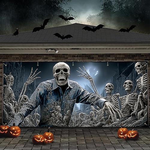 Halloween arazzo Copertura per porta del garage Grande appeso Costumi scheletro Stampa 3D Gotico punk oscuro Da serata All'aperto Sfondi di ripresa Yarda Casa infestata Arredamento per la casa