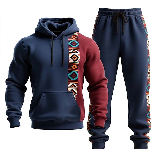 Per uomo Tuta Da Ginnastica Set di felpe Pop art Fantasia geometrica 2 pezzi Stampa Sportivo Informale Sport Stampa 3D Essenziale Streetwear Abbigliamento sportivo Abbigliamento Felpe con cappuccio