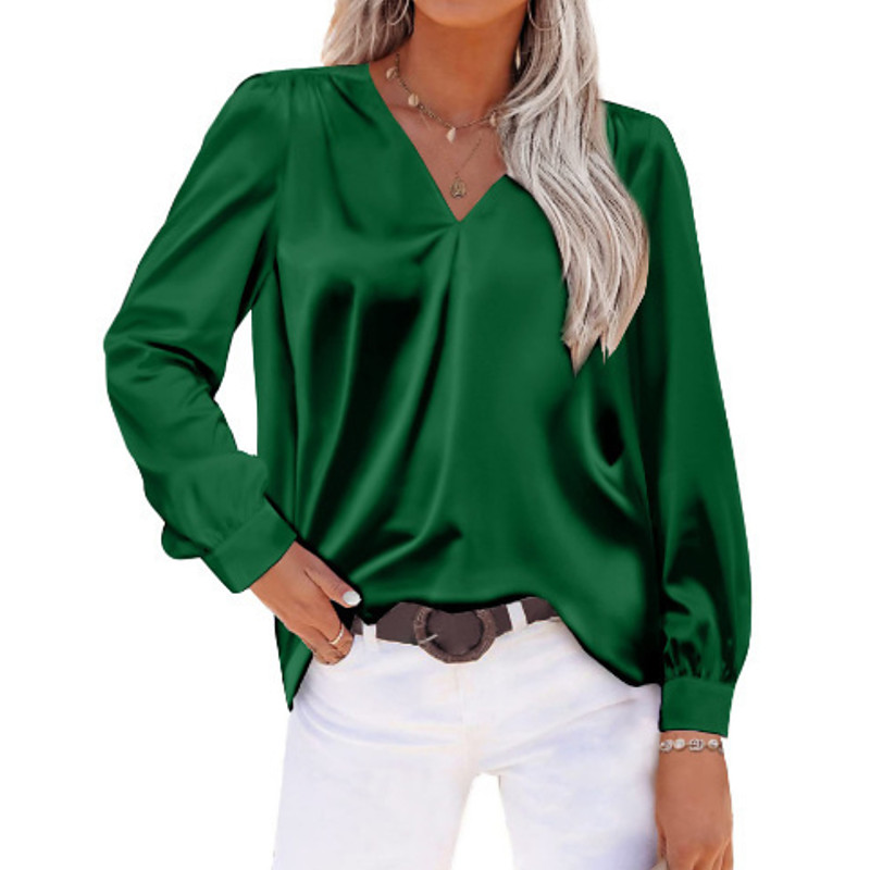 Women's Satin Shirt Blouse Plain Elegant Vintage Stylish Short Sleeve V Neck Regular Tops Daily Holiday Going out Patchwork Black White Champagne Wine Red Summer Spring Fall
