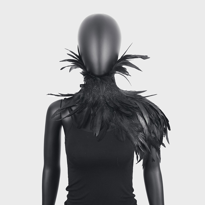 Women's Black Feather Cape Shawl with Lace Applique, Gothic Victorian Vampire Costume Accessories