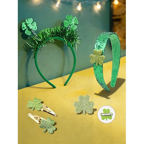 set di accessori per capelli da donna per il giorno di San Patrizio (confezione da 4) - cerchietto con fiocco a forma di trifoglio e paillettes verdi fermagli per capelli, accessori per costumi