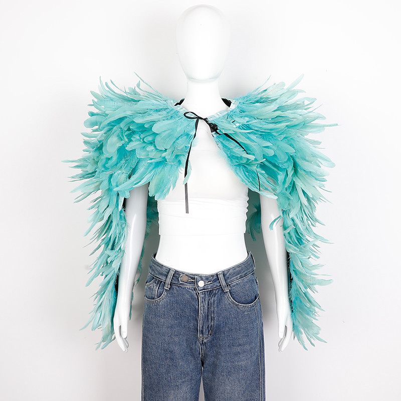 Carnival 2026Rio Carnival Samba Accessories Women's White Feather Cape Shawl with High Collar Brazil Festival Performance Costume