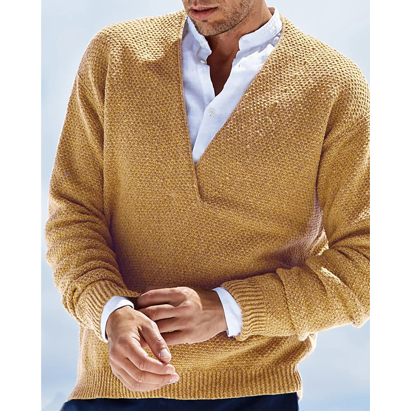Men's Pullover Sweater Jumper Dress Sweater Knit Sweater Ribbed Knit Regular Knitted Plain V Neck Fashion Basic Daily Wear Date Clothing Apparel Fall Winter caramel Black S M L