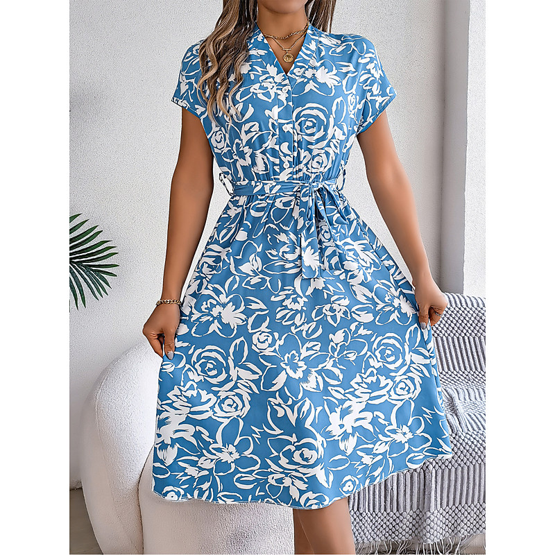 Women's Casual Dress Swing Dress Floral Print V Neck Midi Dress Stylish Casual Daily Date Half Sleeve Summer