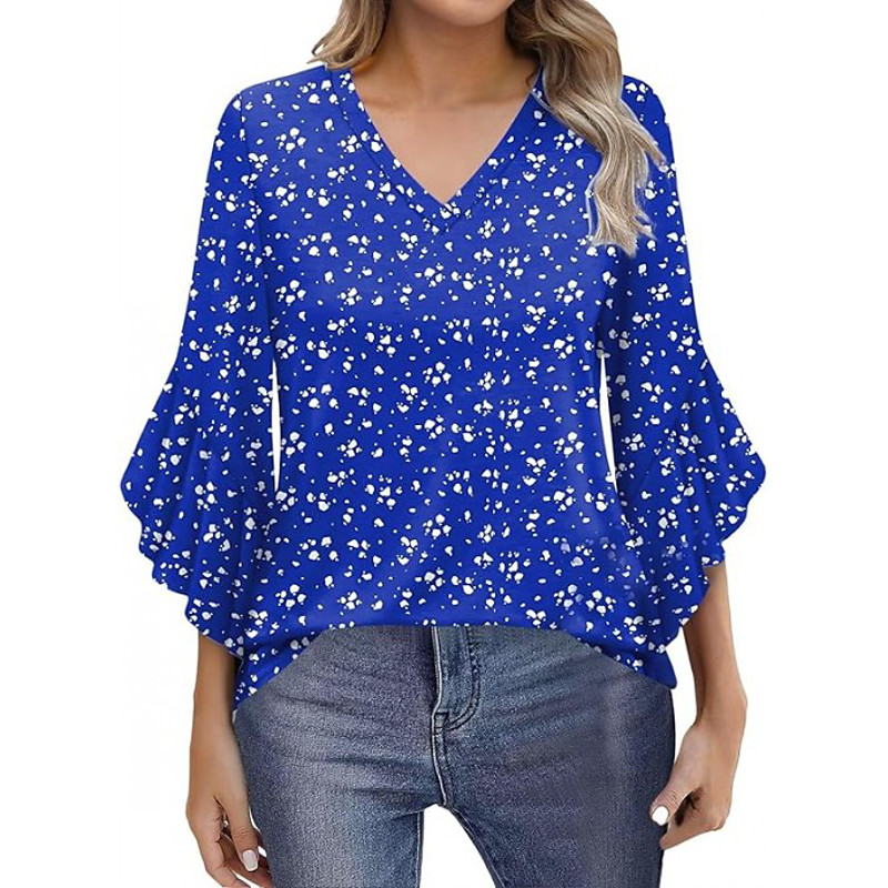 Valentine's Day Women's Blouse Bohemia Fashion Trendy 3/4 Length Sleeve V Neck Regular Tops Daily Party Outfits Date Night Outfits Black White Pink Red Blue Spring Fall