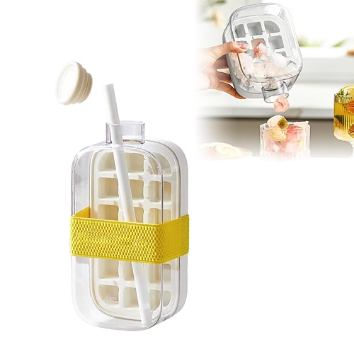 bottiglia per cubetti di ghiaccio, 2 in 1 vassoio per cubetti di ghiaccio senza contatto, bottiglia d'acqua con coperchio e contenitore, bottiglia per la produzione di cubetti di ghiaccio, vassoio per
