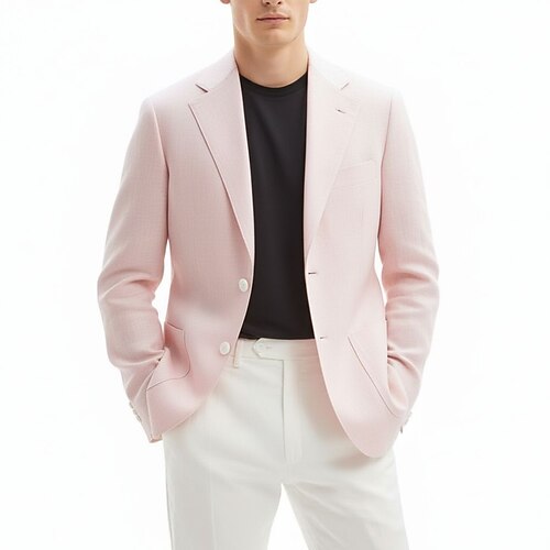 Per uomo Blazer di Lino Colletto ad incastro Moda Classico Casual Tinta unita Blazer in lino Nero Bianco Rosa Vestibilità su misura Monopetto Due Bottoni