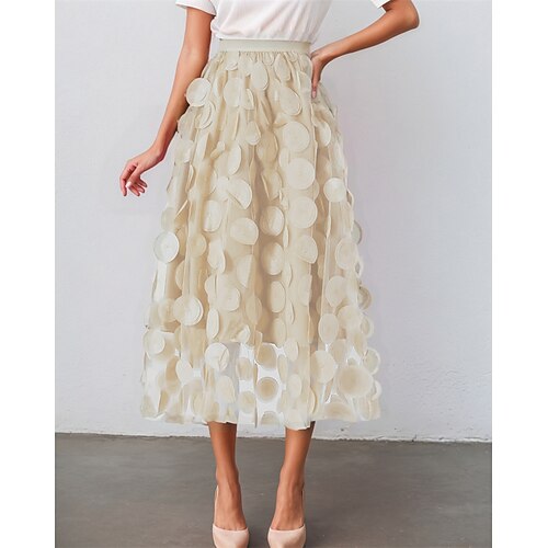 Per donna Taglia standard asiatici Linea A Gonne di garza Elegante Moda Midi Vita Alta Gonne Tinta unita Floreale Tulle Micro-elastico Riunione di famiglia Casual Quotidiano Aalbicocca Rosso bordeaux