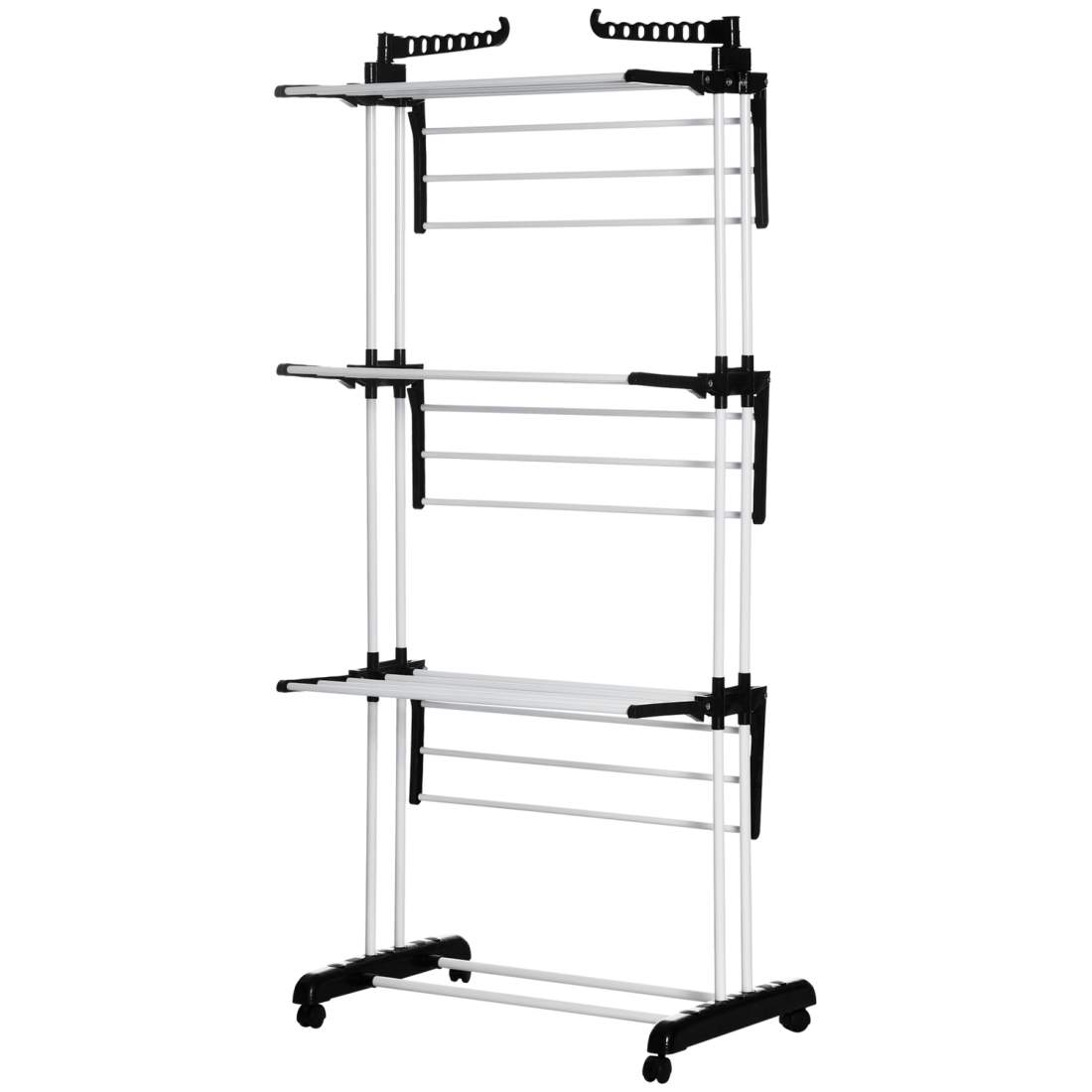 Black Clothes Airer Tower med hjul og 4 niveauer