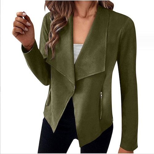 Damen Jacke Warm Reißverschluss Öffnung vorne Vintage Klassisch Streetstyle Einfarbig Schule Büro Arbeit Straße Offene Vorderseite Regulär Revers Normale Passform Langarm Oberbekleidung Weinrot