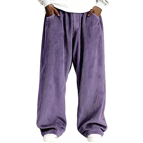 Per uomo Pantaloni Pantaloni in velluto a coste Pantaloni Larghi Pantaloni casual Pantaloni della tuta a gamba dritta Coulisse Gamba larga Tinta unica Comodità Lunghezza intera Casuale Quotidiano