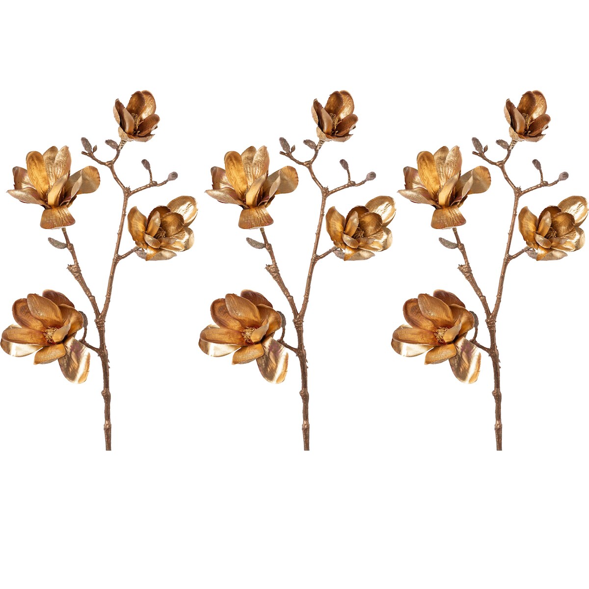 CREATIV green künstliche Pflanze Magnolie, 85 cm, altgold, 3er Set