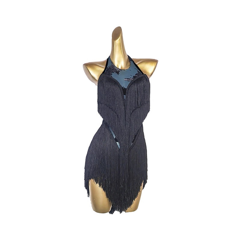 Latin Dance Dress Tassel Splicing Women's Performance Training Sleeveless Chinlon Spandex