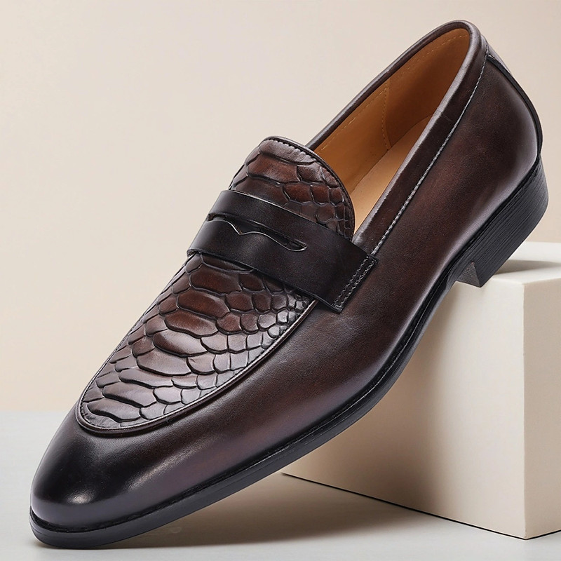 Men's Brown Croc-Embossed Leather Loafers – Stylish and Comfortable Slip-On Shoes for Casual and Formal Wear