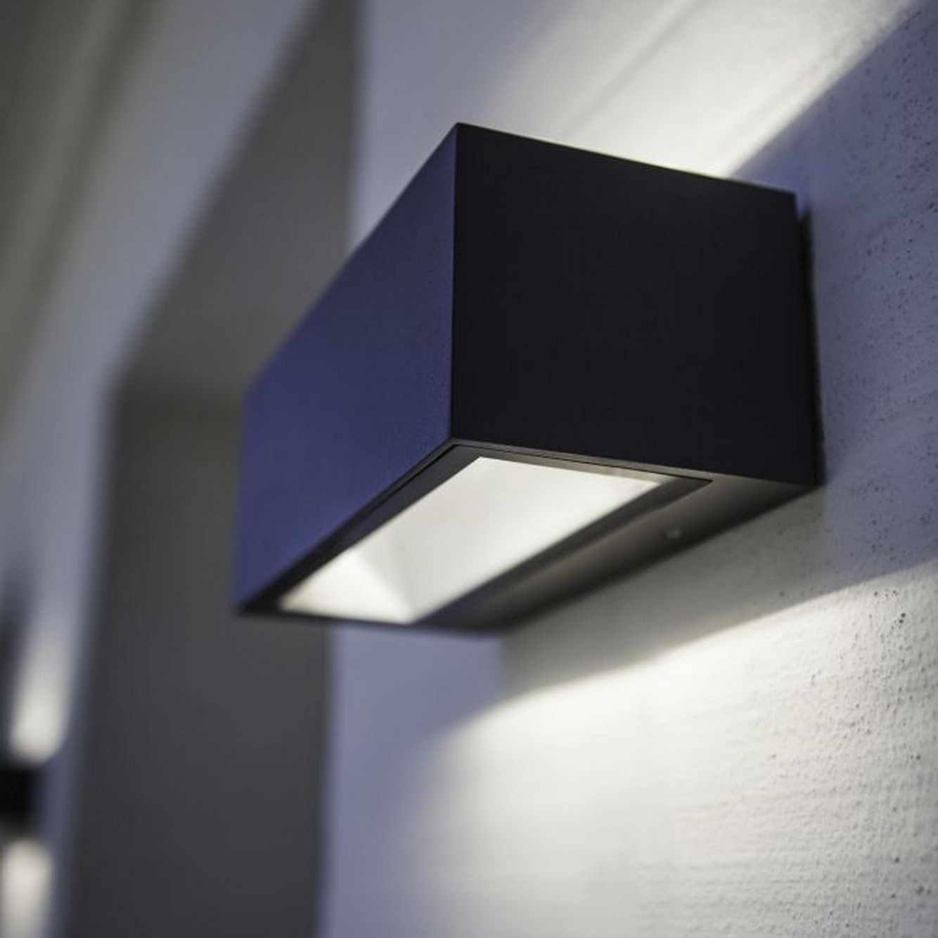 Lutec Gemini - buiten wandlamp - 30 x 12 x 10 cm - 46W LED incl. - IP54 - donkergrijs