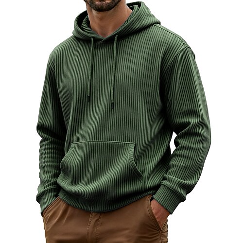 Per uomo Felpa con cappuccio Velluto a coste Verde militare Blu Marrone Grigio Con Cappuccio Semplice Tasca a marsupio Sport Outdoor Casuale Quotidiano senza stampa Streetwear Cool Abbigliamento