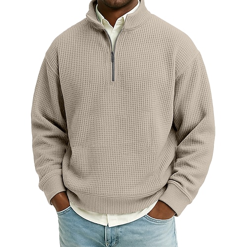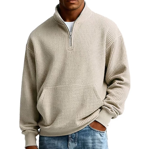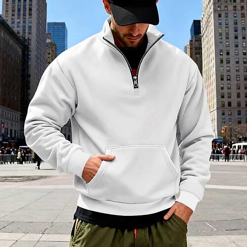 Per uomo Maglia Felpa in pile Maglione Felpa con zip corta Nero Bianco Verde militare Blu marino Cammello Colletto Mao Semplice Tasca a marsupio Sport Outdoor Casuale Quotidiano Streetwear Cool