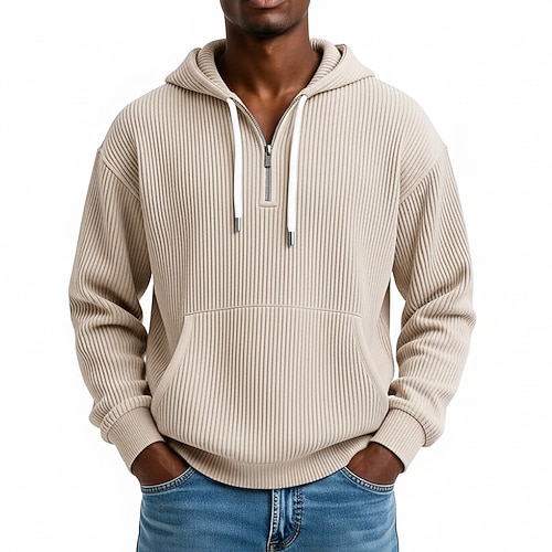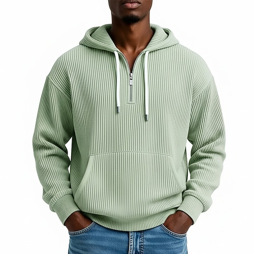 Per uomo Felpa con cappuccio Velluto a coste Maglione Felpa con cappuccio e zip corta Aalbicocca Bianco Viola Verde Grigio chiaro Con Cappuccio Semplice Tasca a marsupio Testurizzato Casuale