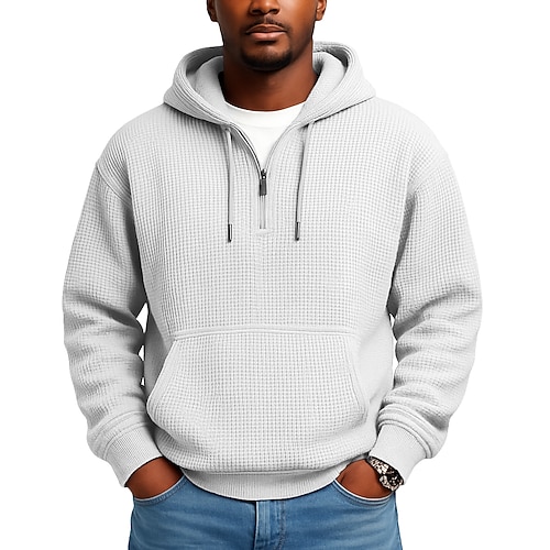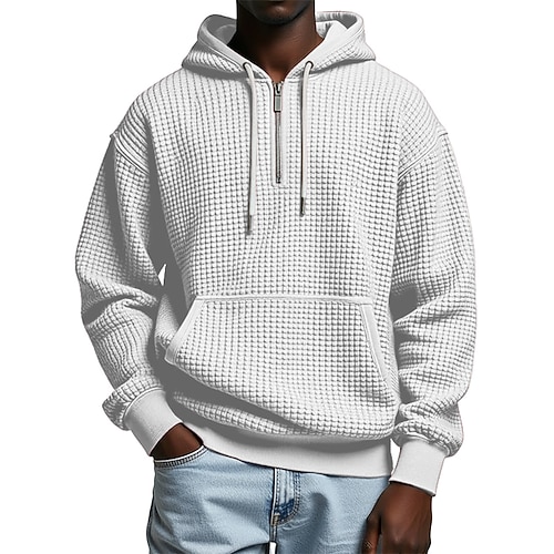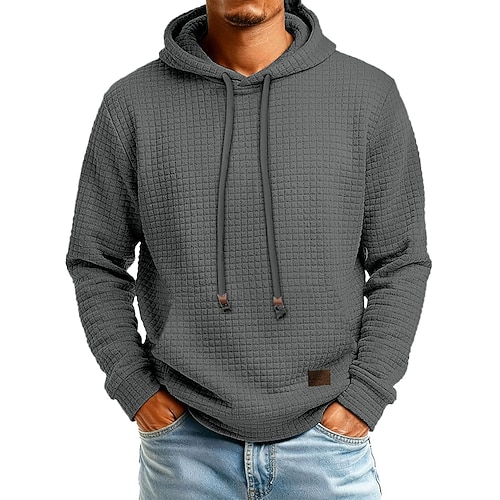 Per uomo Felpa con cappuccio Felpa con cappuccio a nido d'ape Maglione Aalbicocca Rosso bordeaux Nero Bianco Blu marino Con Cappuccio Semplice Tasca a marsupio Testurizzato Casuale Quotidiano Sport