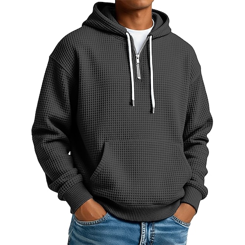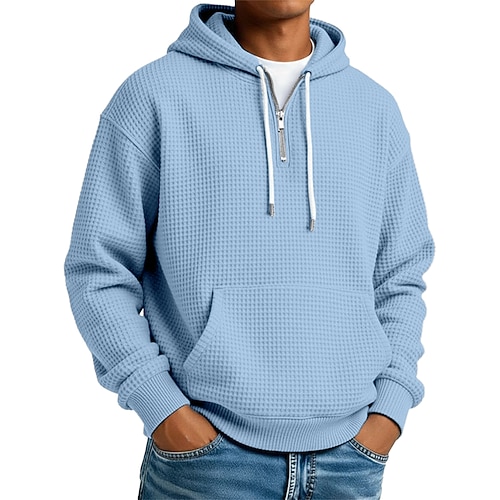 Per uomo Felpa con cappuccio Felpa con cappuccio a nido d'ape Blu Aalbicocca Rosso bordeaux Nero Verde chiaro Con Cappuccio Semplice Tasca a marsupio Testurizzato Sport Outdoor Casuale Quotidiano