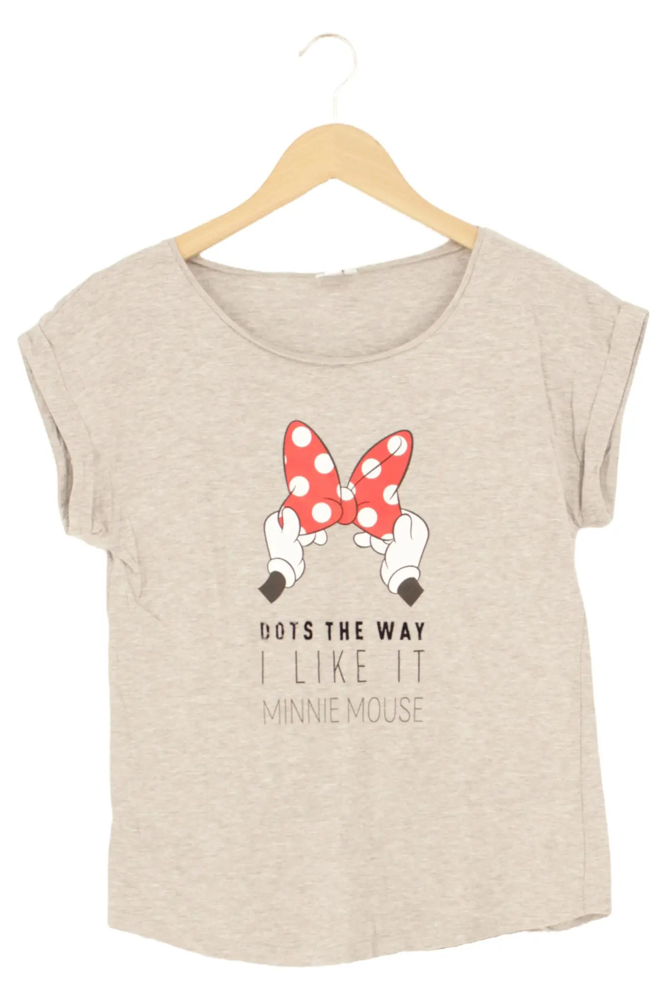 T-Shirt Grau mit Minnie Maus Schleifenmotiv Größe M