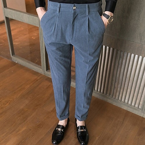 Per uomo Pantaloni Eleganti Pantaloni in velluto a coste Pantaloni Chinos Tasca Bottoni Semplice Comodità Formale Feste Lavoro Moda Stile Classico Nero Blu Micro-elastico