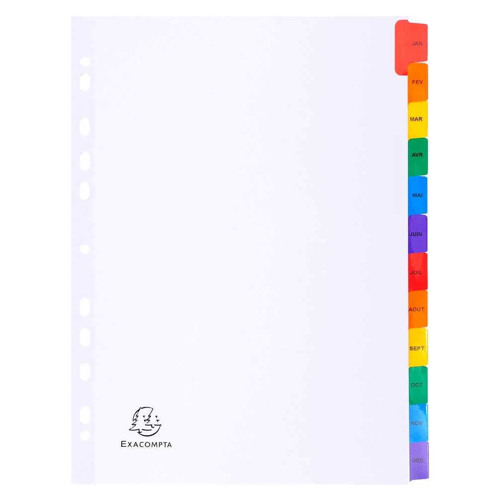 Exacompta Register numerisch bedruckt, weißer Karton 160g/qm, 12 Taben, Jan.-Dez., DIN A4