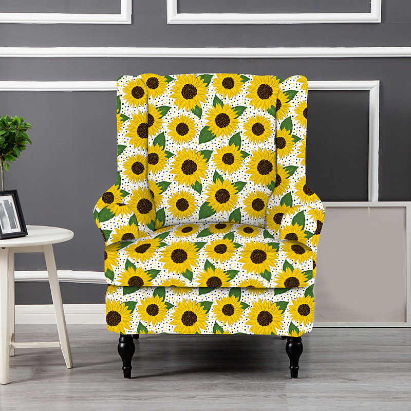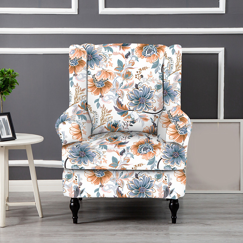 Wingback Chair Cover Floral Striped and Geometric Printed Polyester Slipcovers for Living Room Bedroom and Home Office