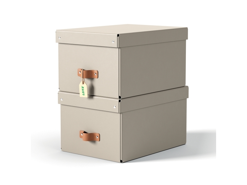 Leitz Puro oppbevaringsboks med lokk, medium, 17L, 100 % resirkulert kartong, pakke med 2, Grå, Kartong, 17 l, 270 mm, 370 mm, 200 mm