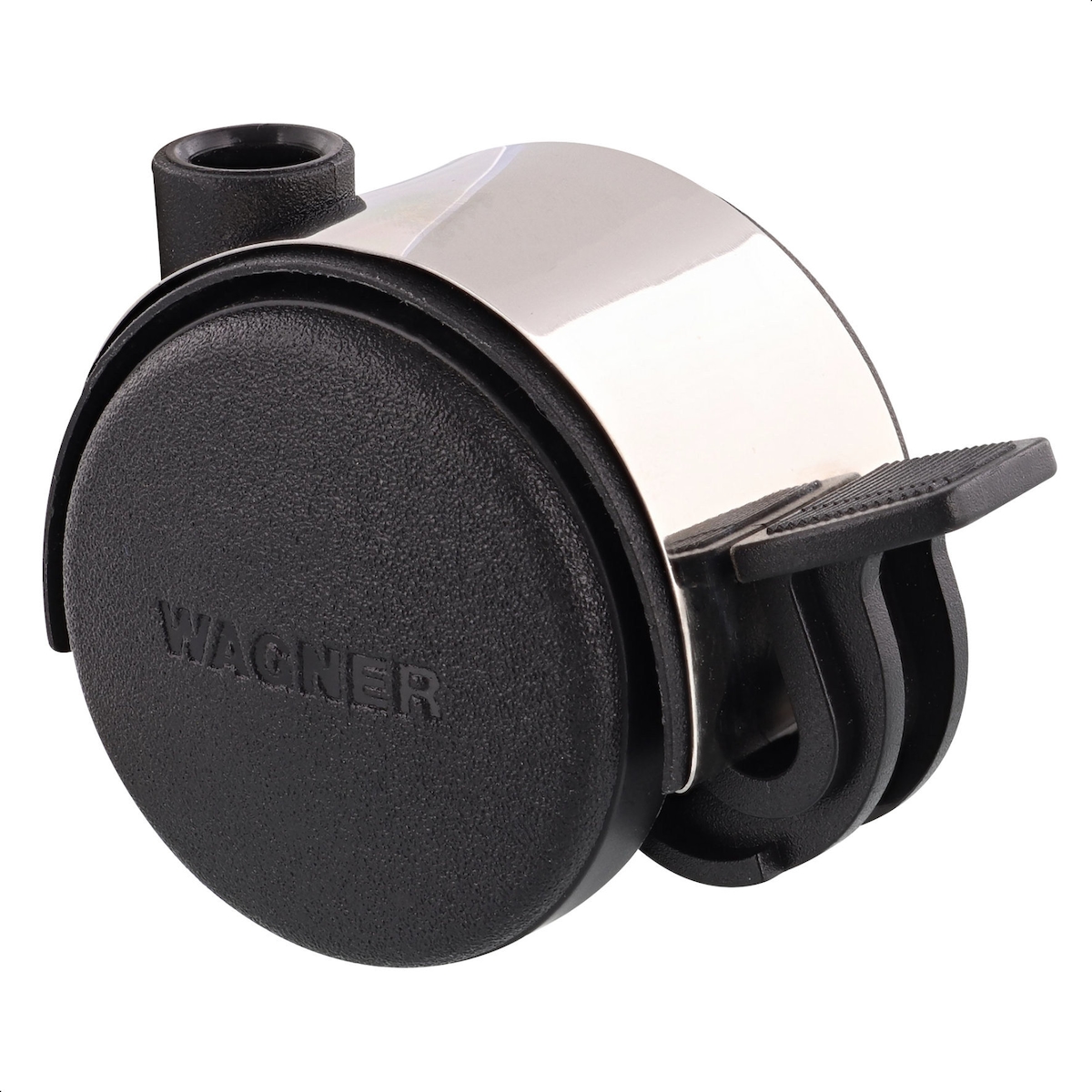WAGNER Design Möbelrolle/Doppelrolle - HART - Durchmesser Ø 50 mm, schwarz/chrom, Feststeller, Tragkraft 50 kg- 01102801