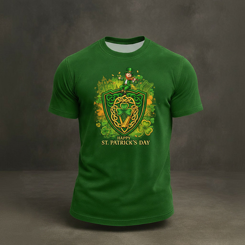 St. Patrick's Day Short Sleeve T-Shirt for Men Ireland Leprechaun Lucky Irish Shamrock Graphic Tee 3D Print Crew Neck St. Paddy's Day Top