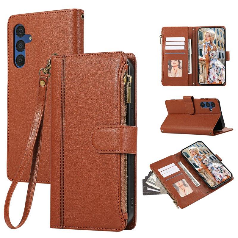 Samsung Galaxy A35 5G Fodral Med Kortfack Dragkedja Äkta Läder - Brun