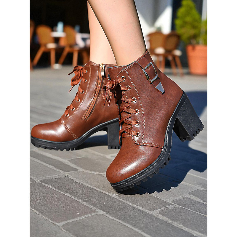 Women's Black Lace-Up Ankle Boots with Chunky Heel and Side Buckle, Casual Fashion Short Boots for Autumn and Winter Streetwear