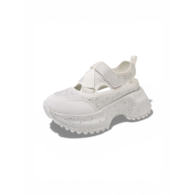 Women's Silver Rhinestone Platform Sneakers, Sparkly Chunky Party Shoes for Nightlife Club Wear