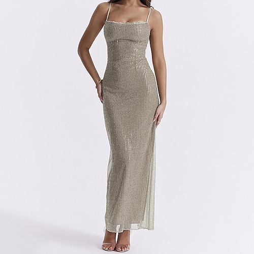Damen Langes Kleid Maxikleid Partykleid Cocktailkleid Unterkleid Elegant Mode Modern Abendgesellschaft Party Cocktailparty Normale Passform Schlank Einfach Ärmellos Spaghettiträger Schulterfrei