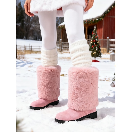 Per donna Stivali Stivali da Neve All'aperto Quotidiano Tinta unica Foderato in Pile Tronchetti Tacco basso Punta Tonda Casual Comfort Pelliccia Sintetica Cerniera Nero Bianco Rosa
