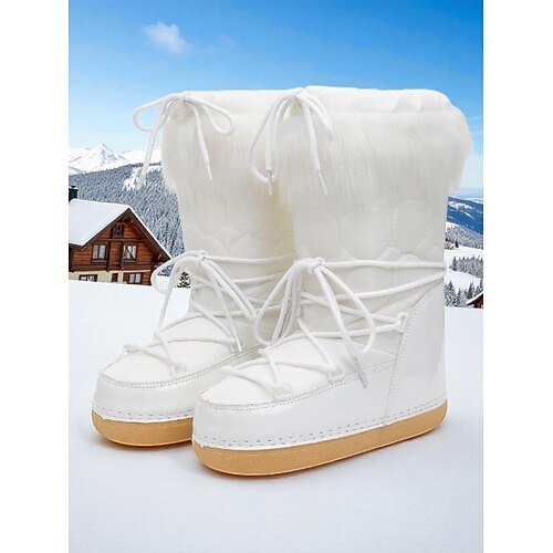 stivali da neve con zeppa foderati in pelliccia sintetica bianca da donna - stivali invernali impermeabili con lacci e suola con plateau, eleganti e comodi per il freddo e le attività casual