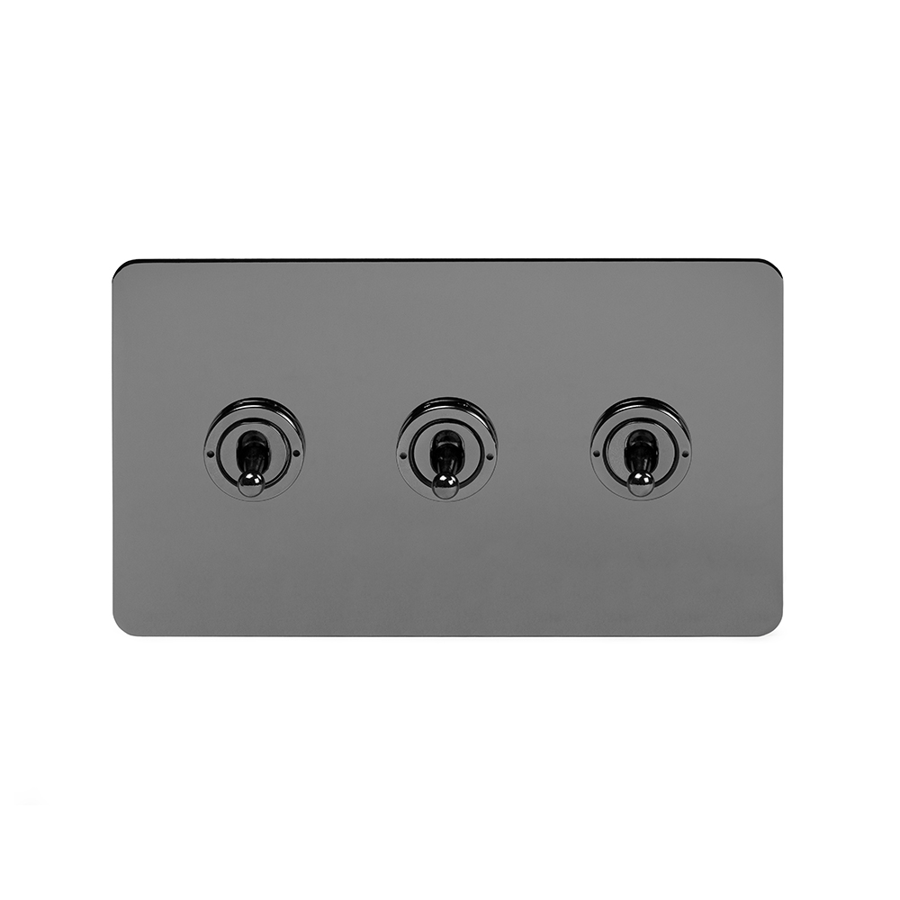 Soho Lighting Black Nickel Flat Plate 20A 3 Gang 2 Way Toggle Switch Screwless