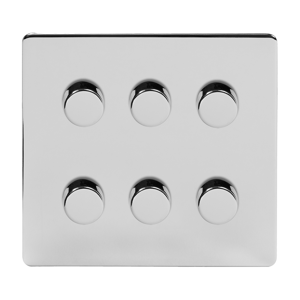 Soho Lighting Polished Chrome 6 Gang 2 Way Intelligent Trailing Dimmer Switch Screwless LED 150W LED (300w Halogen/Incandescent) - Size: H 146mm x W