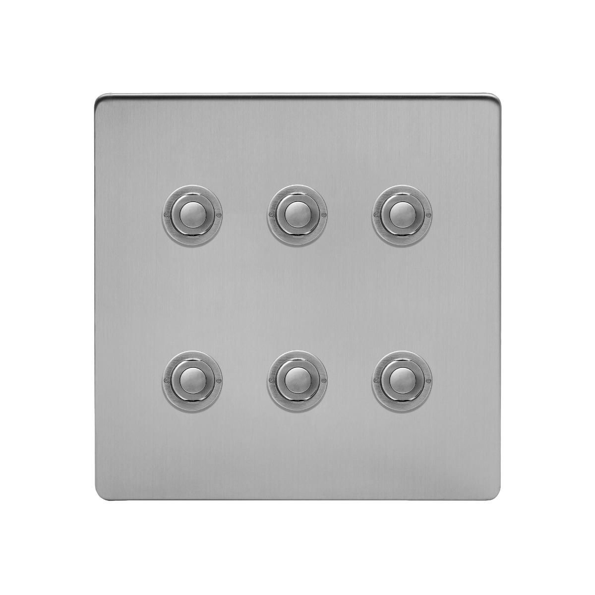 Soho Lighting Brushed Chrome 6 Gang 6A 2 Way Retractive Push Button Switch