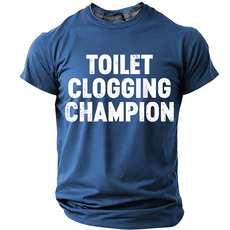 Toilet Clogging Champion Shirt Funny Poop Joke Graphic Tee Distressed Novelty Sarcastic Mens Bathroom Humor Top Clothing Apparel S M L XL XXL XXXL
