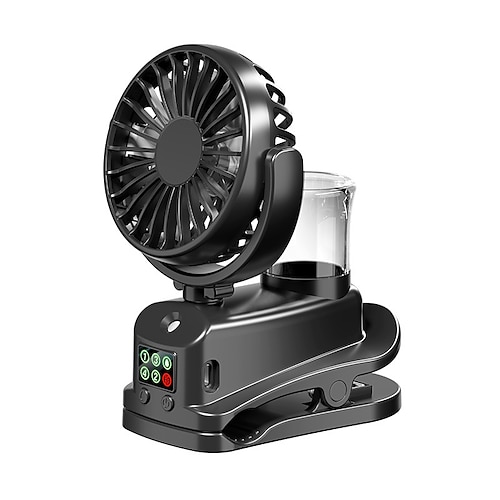 Mini-Tragbarer Clip-Ventilator mit Sprühfunktion, USB-wiederaufladbar, 4-stufig einstellbarer Sprühnebelventilator für Sommer, Zuhause, Kinderwagen, Büro und Outdoor